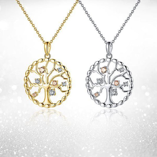 Tree Of Life Two Tone Crystal Pendant Necklace
