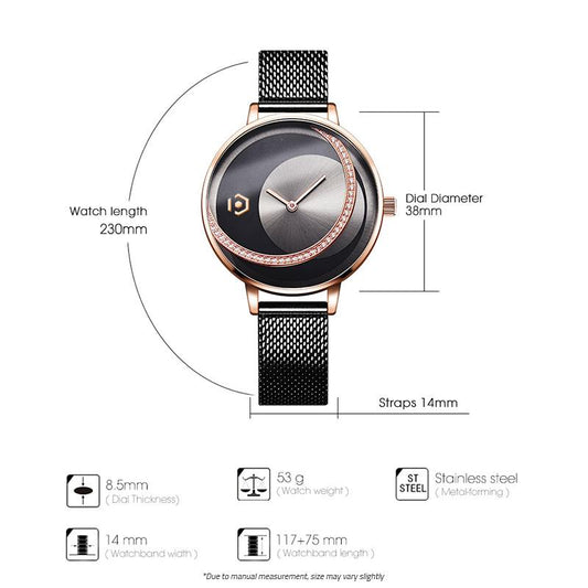 Selene Tri-tone Rose Gold Black Mesh Band Watch