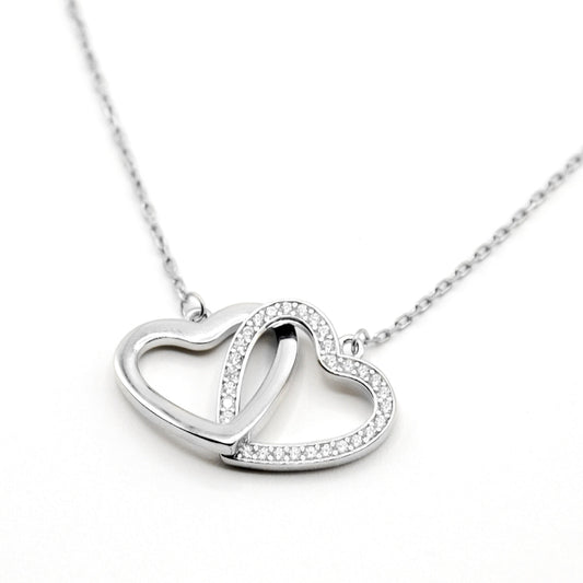 Mother & Daughter, No matter Where We Go - Sterling Silver Joined Hearts Necklace Gift Set