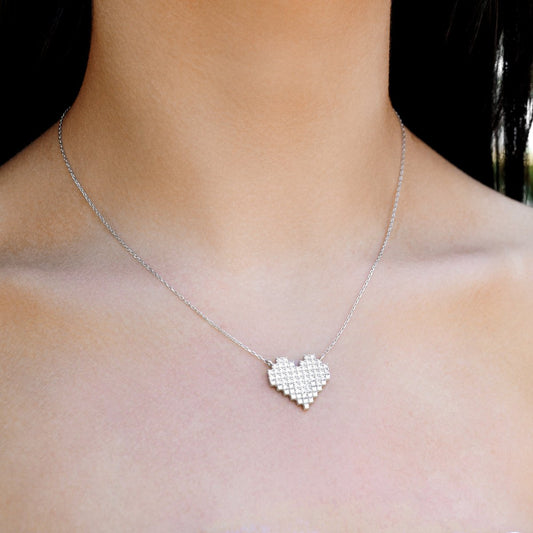 SAVE 33%Sterling Silver Pixel Heart Necklace