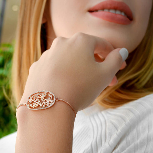 Tree of Life Window Box - Tree of Life Rose Gold Oval Slider Bracelet