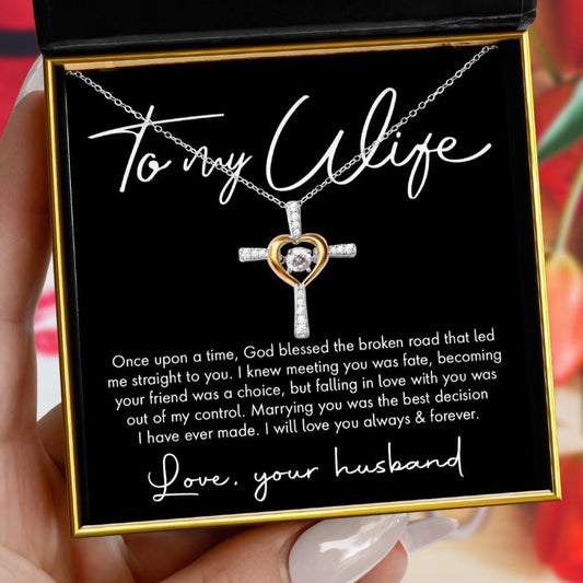 To My Wife, Love Your Husband - Dancing Crystal Heart Cross Necklace Gift Set