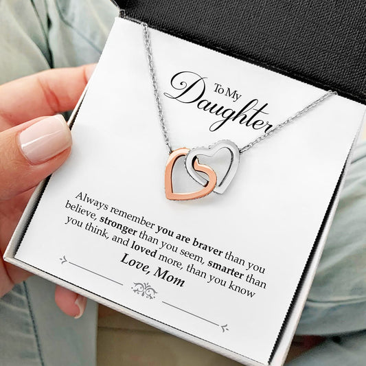 To My Daughter, Love Mom - Interlocking Hearts Necklace Gift Set