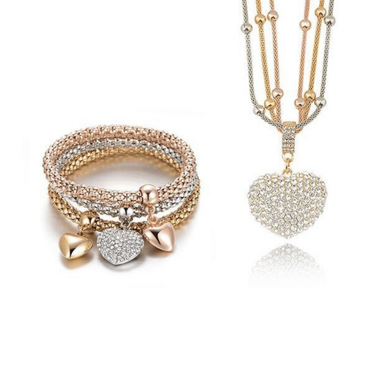 Solid Hearts Charm Bracelet Set With Crystal Studded Heart Pendant Necklace ($30 Value)