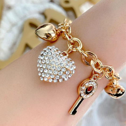 Love Locked Gold Charm Bracelet with Free Matching Necklace ($30 Value)