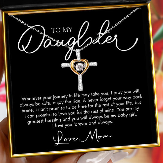 To My Daughter, Love Mom - Dancing Crystal Heart Cross Necklace Gift Set