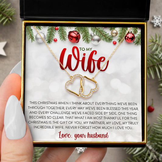 To My Wife, This Christmas - Gold Joined Hearts Necklace Gift Set