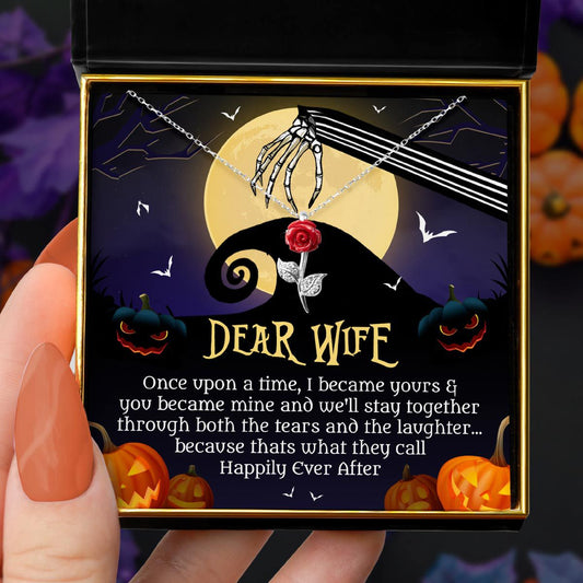 Dear Wife, Once Upon a Time (Halloween Card) - Red Rose Necklace Gift Set