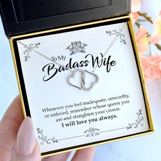 To My Badass Wife (Gold Card) - Crystal Heart Golden Crown Necklace Gift Set