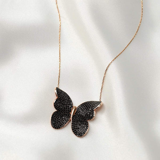 To My Best Friend, Strong Wings - Black Crystal Butterfly Necklace Gift Set