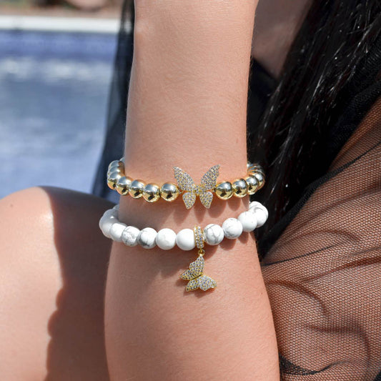 Glitz and Glam Pave Butterfly Beaded Bracelet