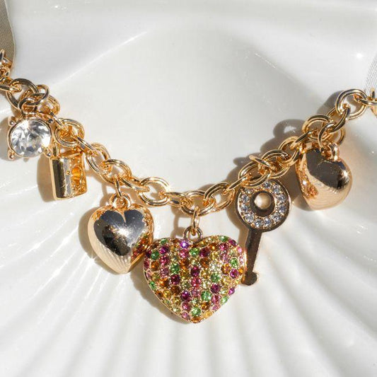 SAVE 33%Pink Satin Pave Heart Charm Necklace