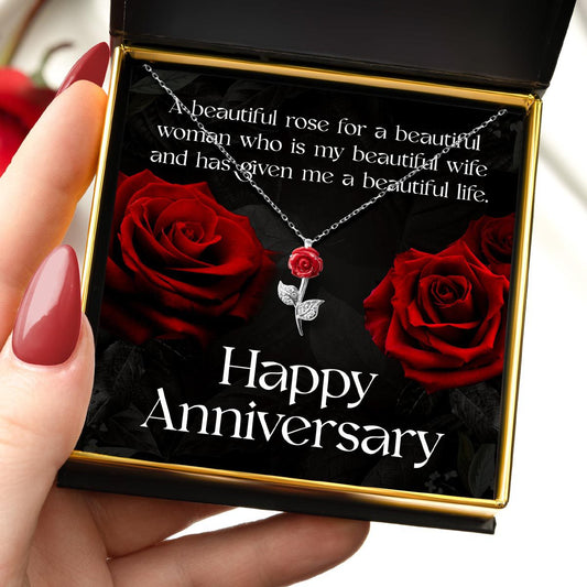 Happy Anniversary, Beautiful Rose - Red Rose Necklace Gift Set
