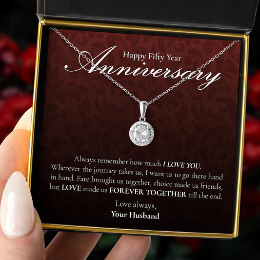 Happy Fifty Year Anniversary - Classique Sterling Silver Halo Pendant Necklace Gift Set