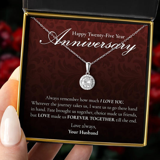 Happy Twenty Five Year Anniversary - Classique Sterling Silver Halo Pendant Necklace Gift Set