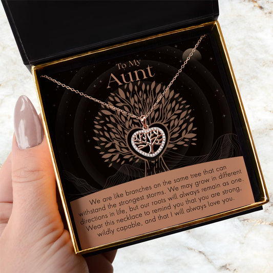 To My Aunt - Strong Roots - Tree of Life Mini Heart Pendant Necklace Gift Set