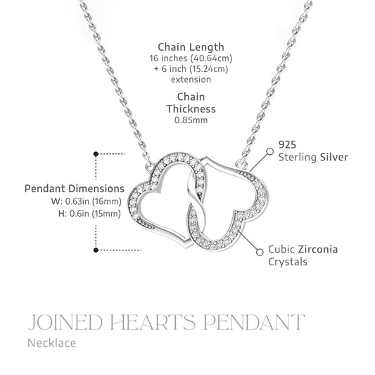 Mother & Daughter, No matter Where We Go - Sterling Silver Joined Hearts Necklace Gift Set