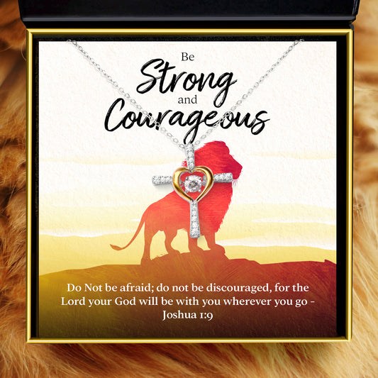 Be Strong and Courageous - Dancing Crystal Heart Cross Necklace Gift Set