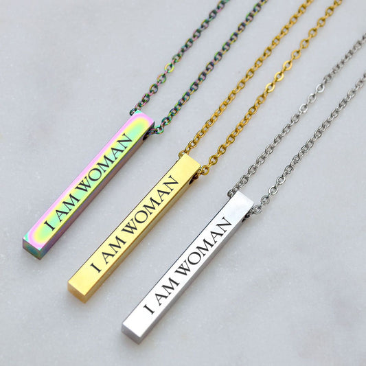 I AM WOMAN - Engraved Vertical Bar Necklace