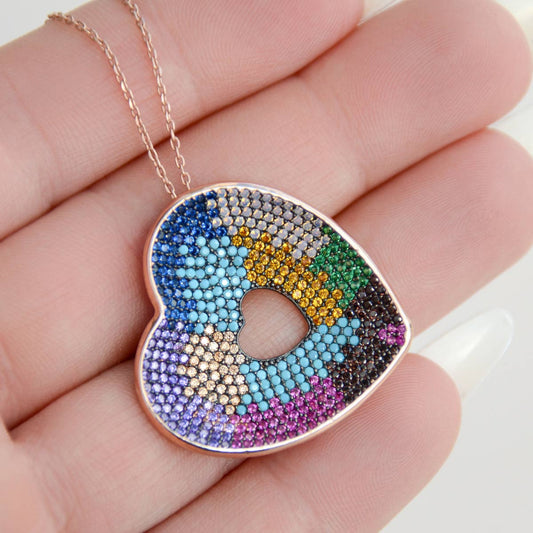 Dear Mom (Puzzle Piece Card) - Multicolor Crystal Heart Necklace Gift Set