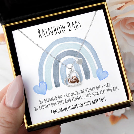 Rainbow Baby - Baby Feet Heart Pendant Necklace Gift Set