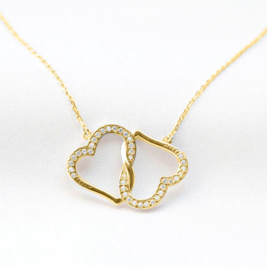 To My Daughter the Beauty, From Mom - Joined Hearts Gold Necklace Gift Set