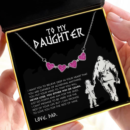 To My Daughter, Love Dad (Gladiator Card) - Pink Magnetic Hearts Clover Necklace Gift Set