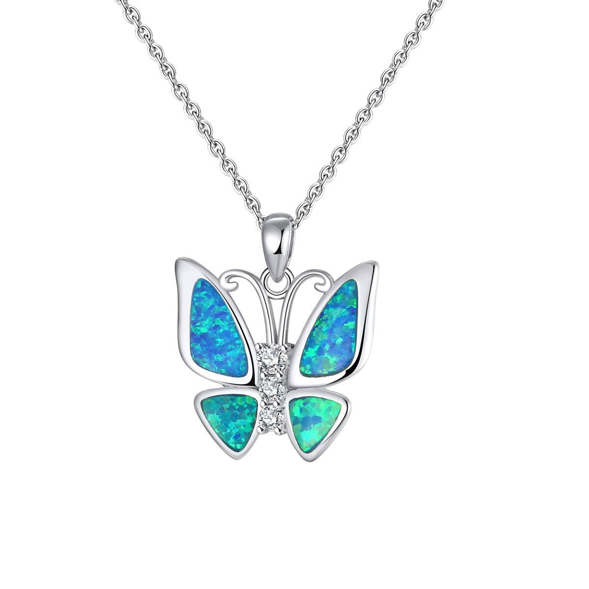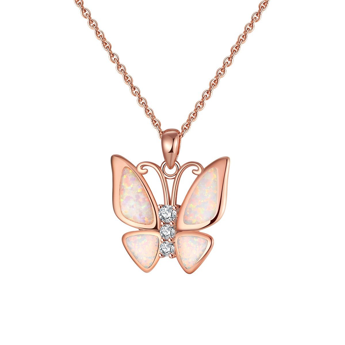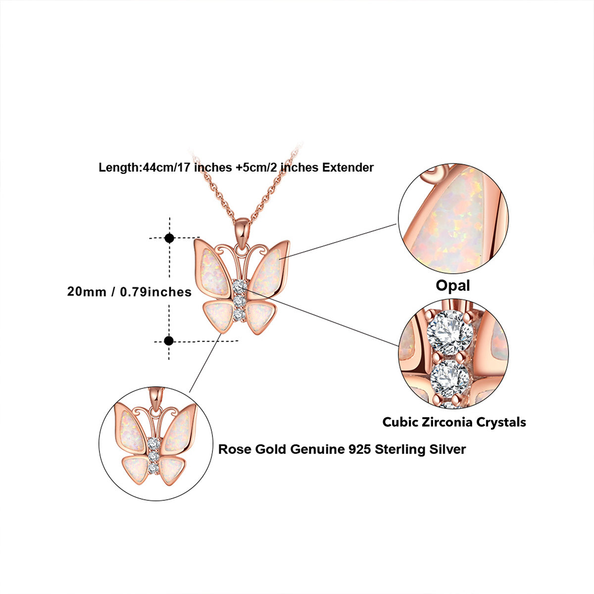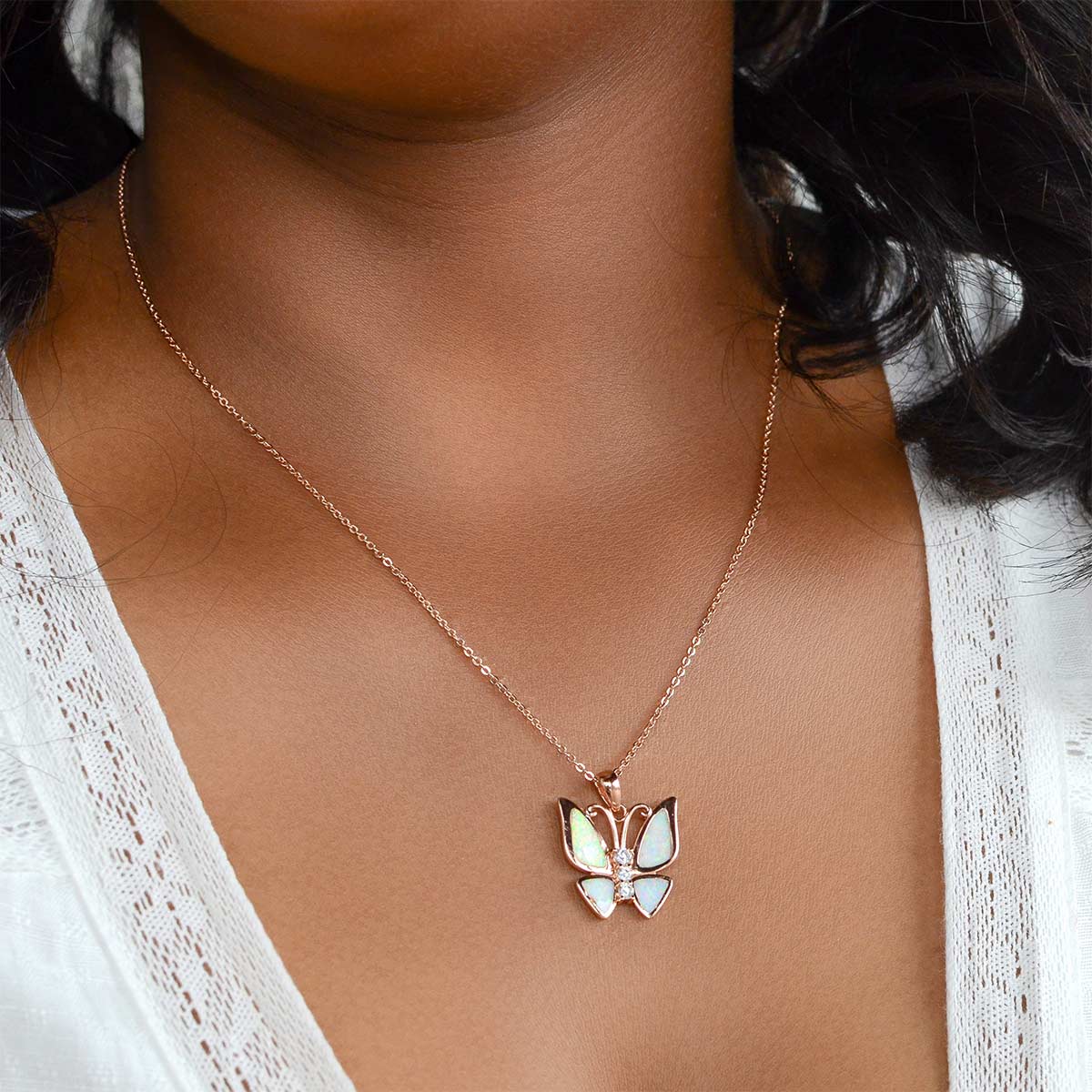 - Design: Butterfly Pendant with CZ crystal details and synthetic fire opal wings
