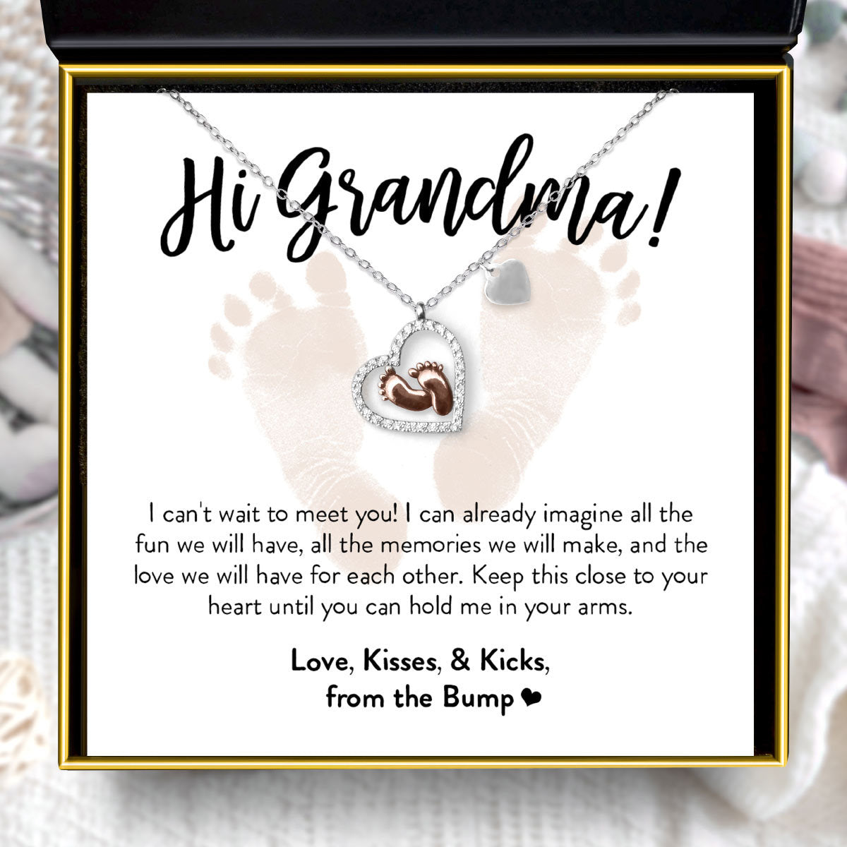 Hi Grandma, I Can't Wait to Meet You - Baby Feet Heart Necklace Gift Set