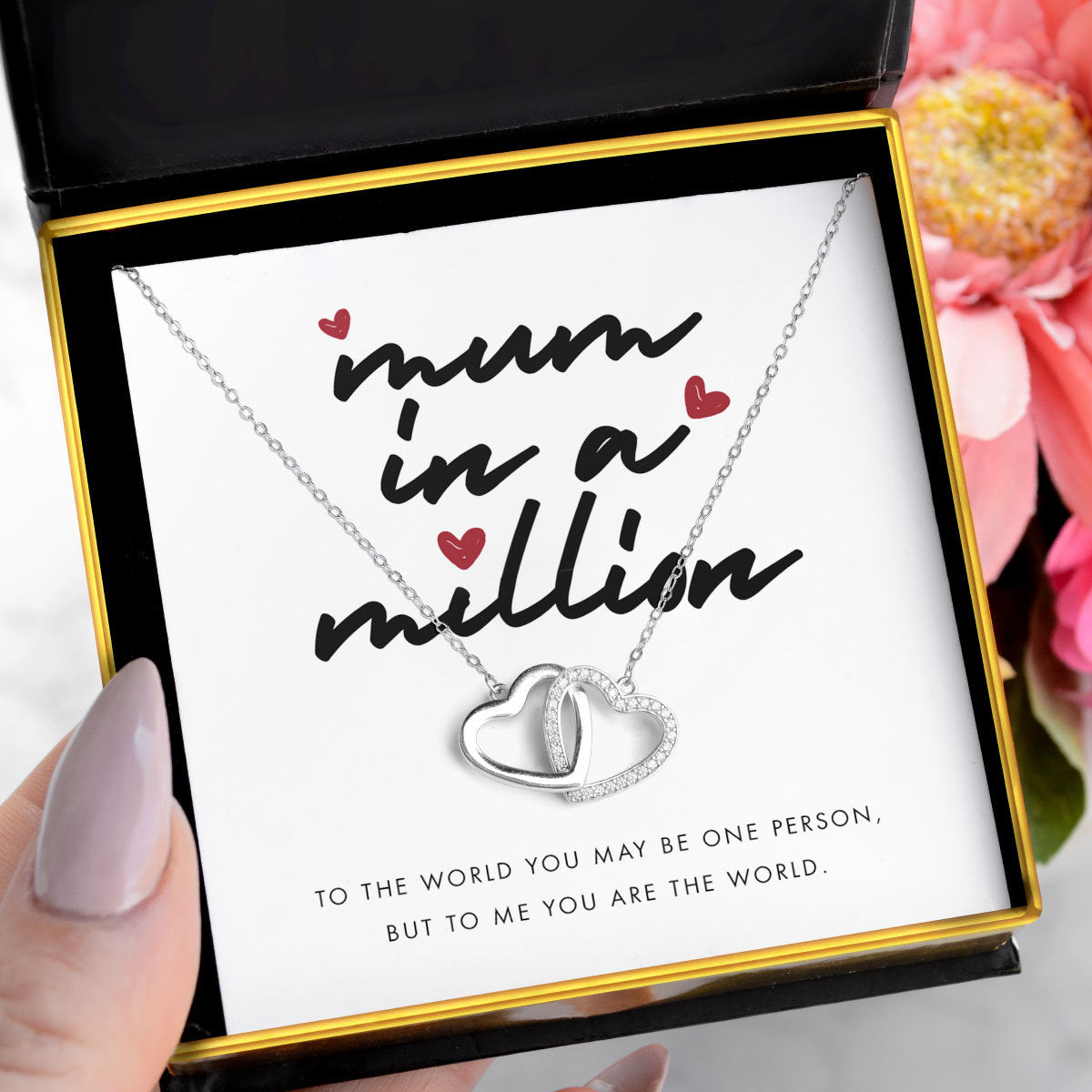Mum in a Million - Sterling Silver Joined Hearts Necklace Gift Set