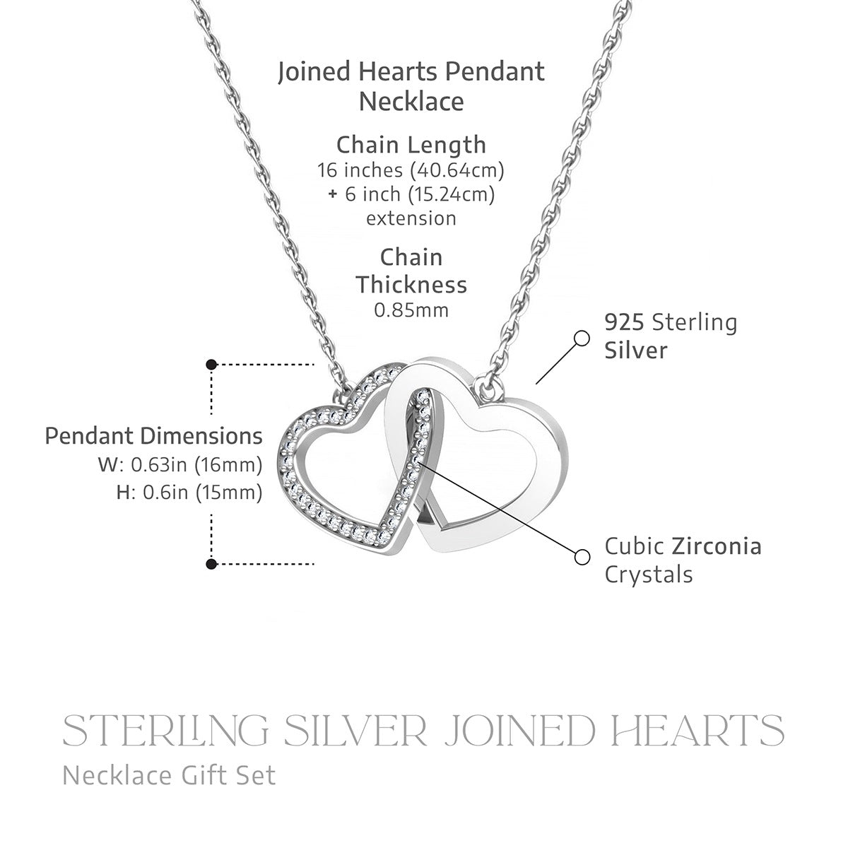 Give your Mum a special gift she'll cherish forever. Show her how much she means to you with this unique gift set, featuring a unique sterling silver joined hearts design necklace and heartfelt message card.