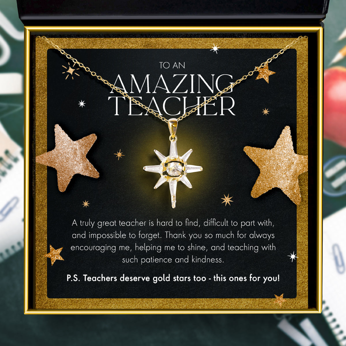 To An Amazing Teacher, Truly Great - Dancing Crystal Gold Star Pendant Necklace Gift Set