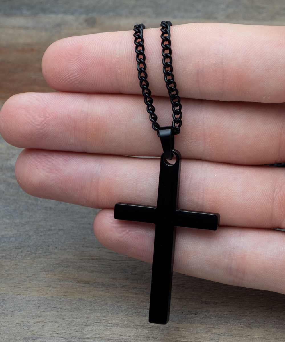 - Features a cross pendant crafted from brass metal and e-coated using electric currents to add a layer of protection while polishing the piece to perfection.