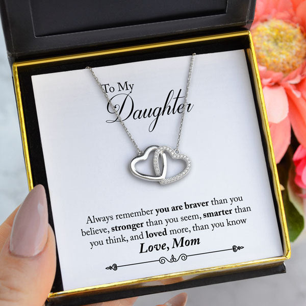 - Card reads " To My Daughter - Always remember you are braver than you believe, stronger than you seem, smarter than you think, and loved more than you know - Love, Mom"