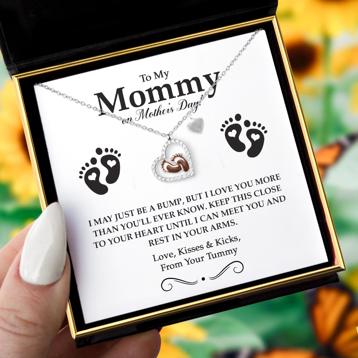 - Card reads "To My Mommy on Mother's Day - I may just be a bump, but I love you more than you'll ever know. Keep this close to your heart until I can meet you and rest in your arms. Love, Kisses, & Kicks, From Your Tummy"