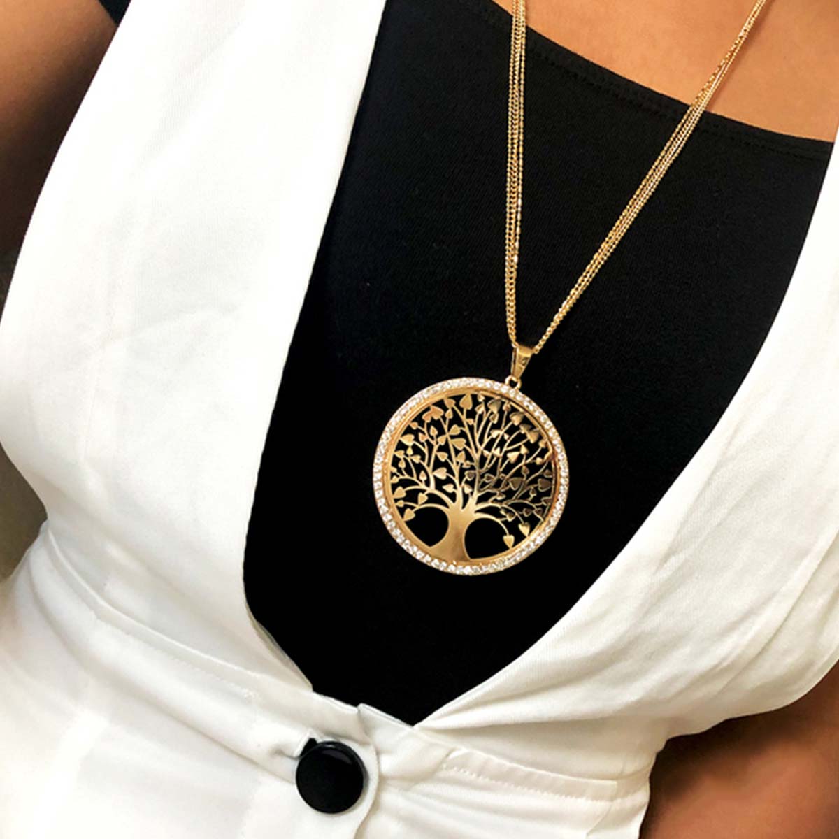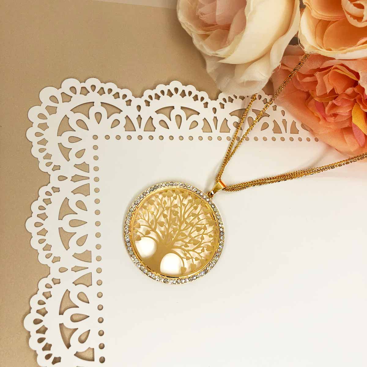 Tree of Life Pendant Necklace with Rhinestones & Crystals